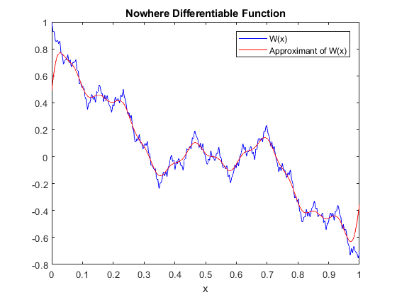 Figure 2: The solution (red) to approximating Weierstrass' nasty function (blue)